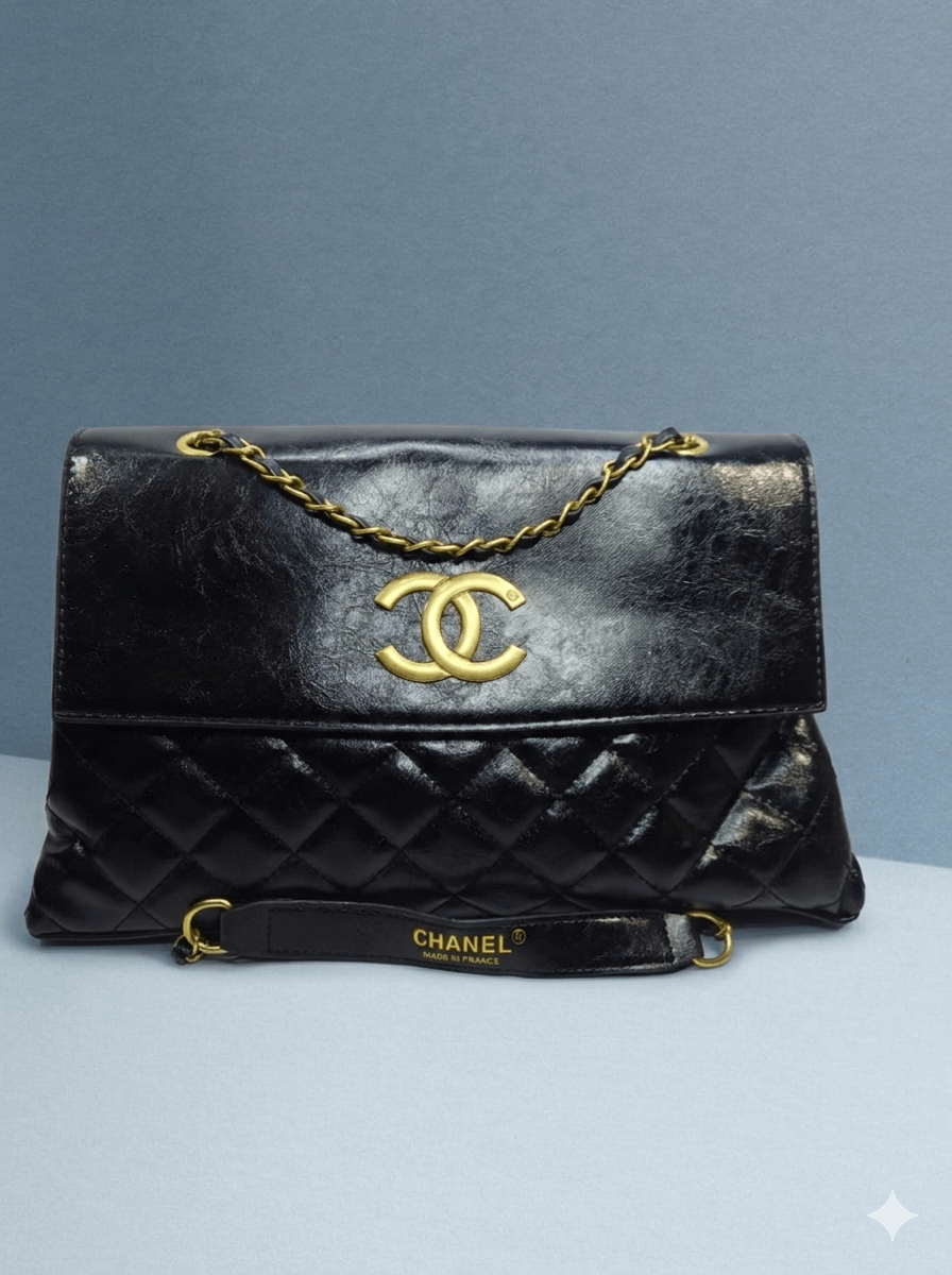 Make every entrance memorable with this stunning Quilted Flap Bag. Expertly crafted with a glossy, crinkled leather finish, this bag features a dual-texture design—a smooth, high-shine top flap paired with a classic diamond-quilted base. The iconic oversized gold-tone interlocking logo serves as a radiant centerpiece, while the signature leather-intertwined chain strap offers a sophisticated touch of sparkle. This bag is designed for the woman who appreciates a bold, high-fashion aesthetic that transitions effortlessly from a powerful day at the office to an elegant evening gala.